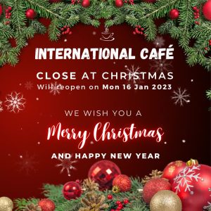 The Cafe will take a break during the university Christmas holiday period and reopen it on Monday 16 January 2023.